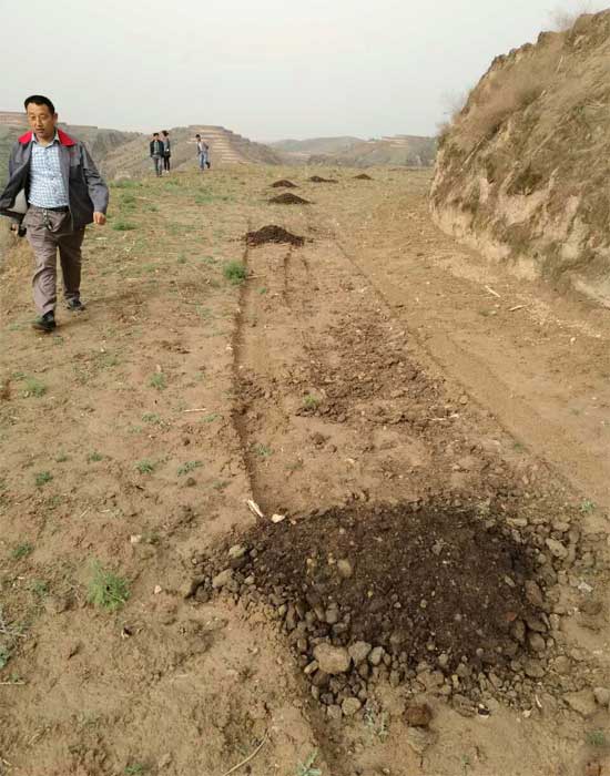 山花爛漫公司小雜糧種植基地負(fù)責(zé)人賀志平、賀利明在基地實(shí)地指導(dǎo)農(nóng)民施用農(nóng)家肥